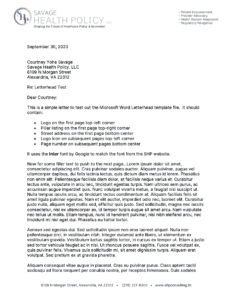 Savage Health Policy, LLC Letterhead: Template